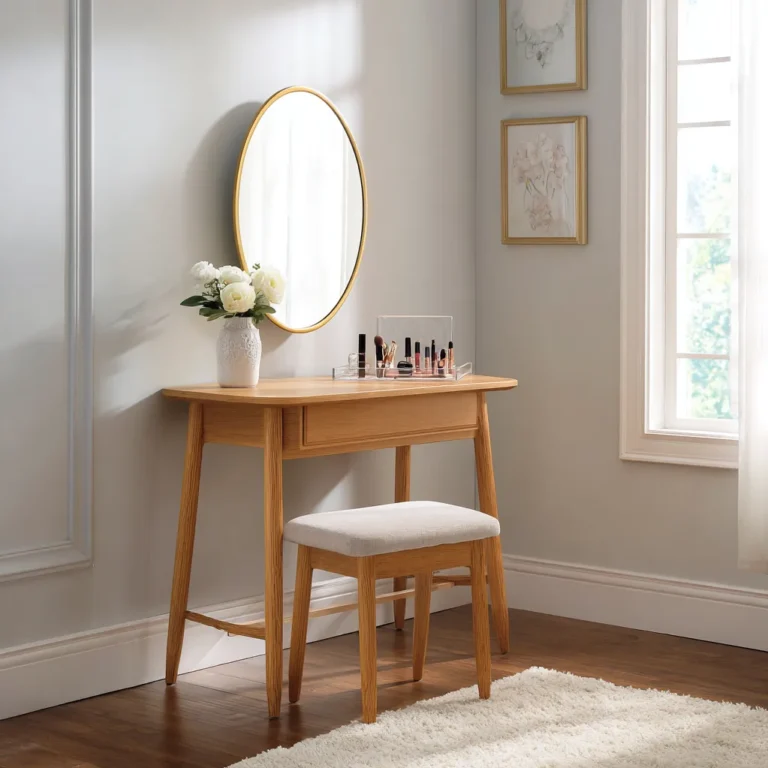 The ideal height for a vanity table typically ranges from 28 to 32 inches (71 to 81 cm), depending on your seating and personal preference. This allows for comfortable use while sitting, with enough clearance for your legs. Pair it with a stool or chair that positions your eyes level with the mirror for easy application. Adjust based on your height; taller individuals might prefer a slightly higher table. Always test the setup to avoid strain during prolonged use.